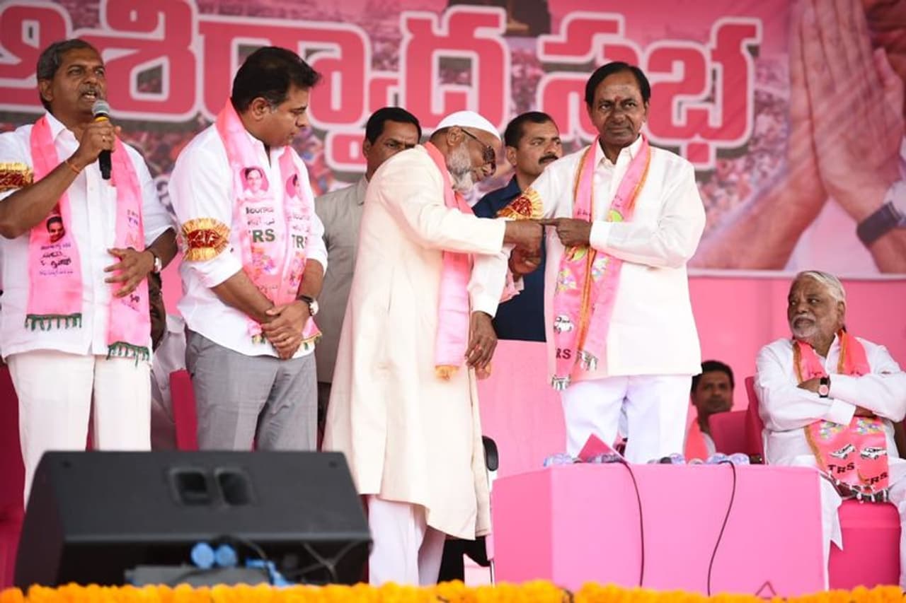 హుజురాబాద్ ప్రజా ఆశిర్వాద సభలో కేసీఆర్, ఈటల (ఫోటోలు)