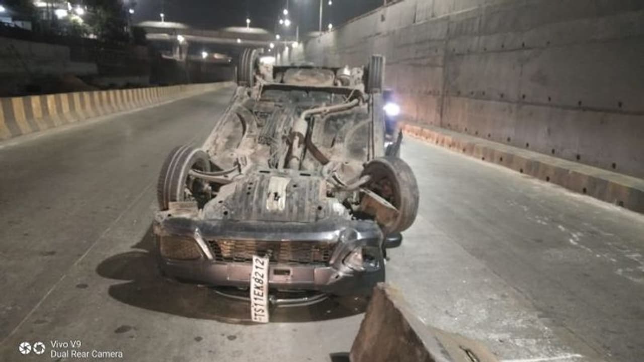 ట్రాఫిక్ అంతరాయం కలగకుండా రోడ్డుకు అడ్డంగా బోల్తాపడిన కారును వెంటనే పక్కకు జరిపారు. గాల్లో ఎగిరి బోల్తా పడటంతో కారు పూర్తిగా ధ్వంసమయ్యింది.