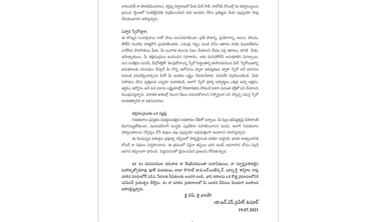 తాను రాజీనామా కోరుతూ ప్రభుత్వానికి లేఖ రాసిన విషయాన్ని ఆయన ట్విట్టర్ వేదికగా వెల్లడించారు. సామాజిక న్యాయం కోసం, సమానత్వం కోసం పనిచేయదలుచుకున్నట్లు ఆర్ఎస్ ప్రవీణ్ కుమార్ వెల్లడించారు. 26 ఏళ్లు పాటు తన మాతృభూమికి ఐపిఎస్ అధికారిగా సేవ చేసినట్లు ఆయన తెలిపారు.