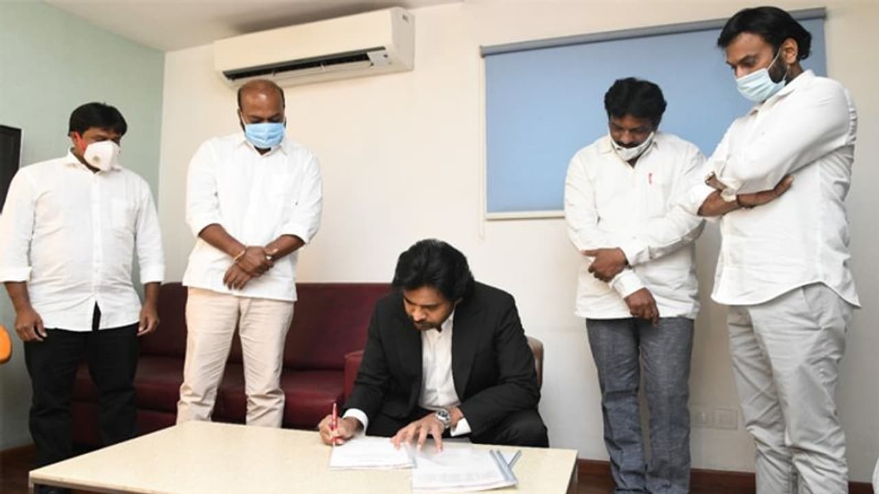 బుధవారం మధ్యాహ్నం హైదరాబాద్ లో వకీల్ సాబ్ షూటింగ్ స్పాట్ లో జనసేనపార్టీ బృందం అధ్యక్షులు పవన్ కల్యాణ్ తో భేటీ అయింది.