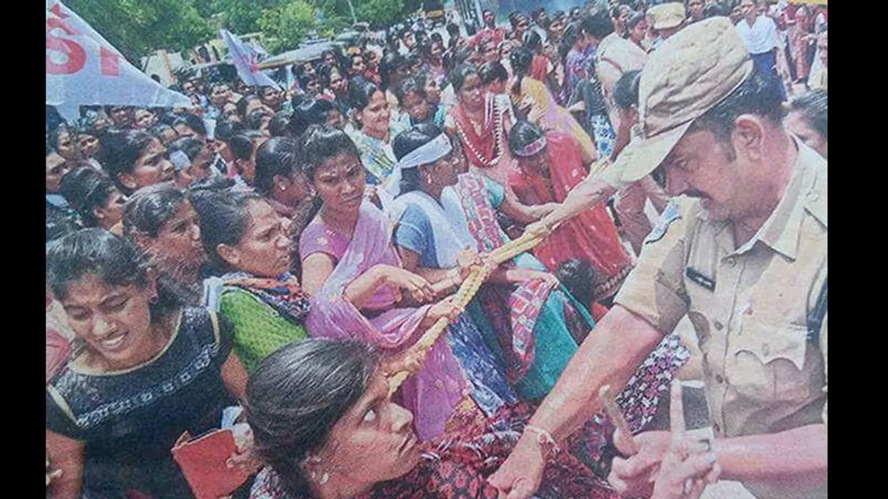 కరీంనగర్ పోలీసు కాకీ క్రౌర్యం విద్యార్థిని గిచ్చిన పోలీసు ఎస్ఎఫ్ఐ ఆందోళనలో పోలీసు దుర్మార్గం హద్దులు మీరిన పోలీసుపై సర్వత్రా నిరసన