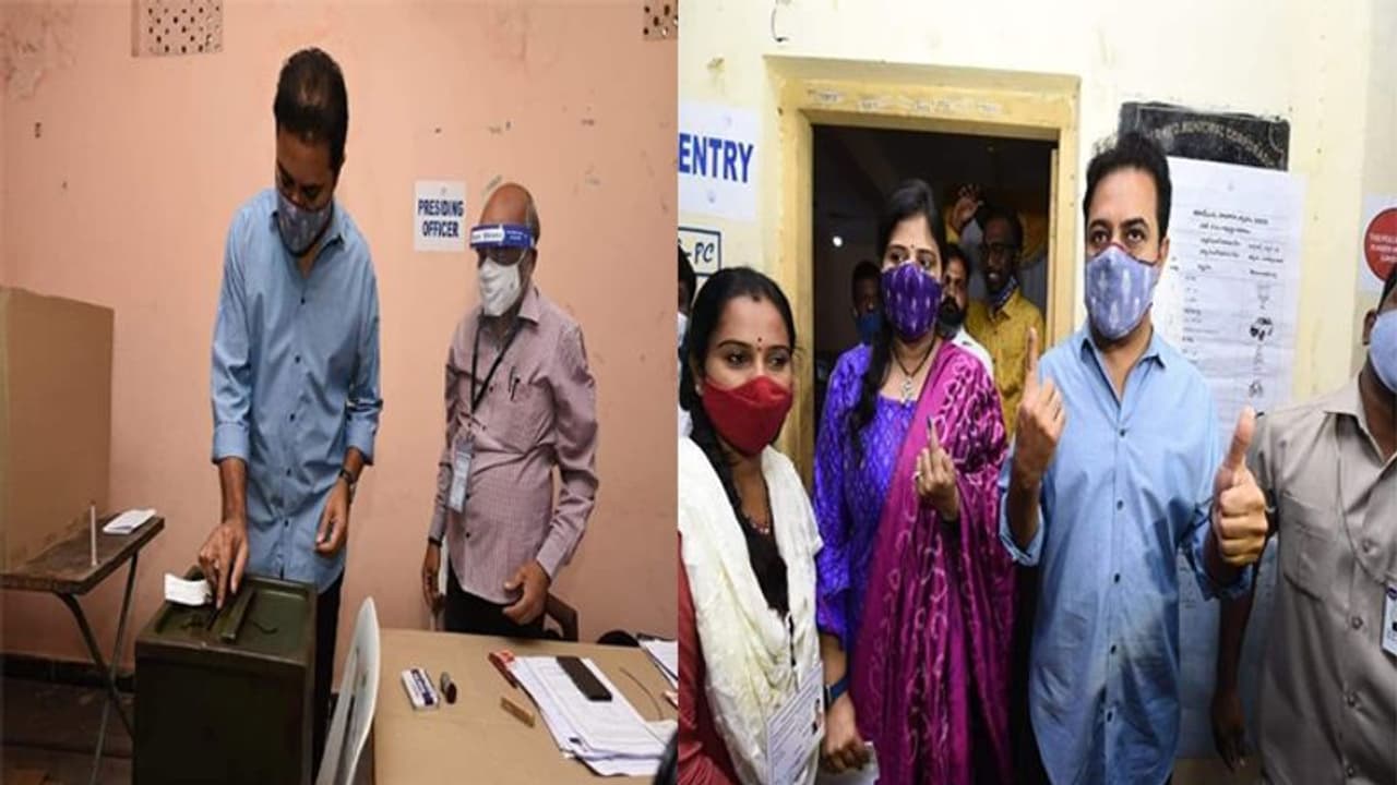 జీహెచ్ఎంసీ ఎన్నికల ఓటింగ్ ప్రారంభమైంది. ఈ రోజు ఉదయం 7గంటల నుంచే ఓటింగ్ మొదలైంది. కాగా.. బంజారాహిల్స్ లోని నందినగర్ జీహెచ్ఎంసీ కమ్యూనిటీ హాల్ లో తమ ఓటు హక్కును కేటీఆర్ వినియోగించారు. కేసీఆర్, ఆయన భార్య శైలిమా తన ఓటు హక్కు వినియోగించుకున్నారు.