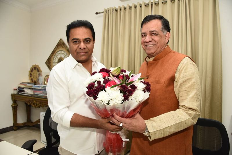 యూపీ మౌలికవసతులు, పరిశ్రమల మంత్రి సతీశ్ మహానా ఆహ్వానంపై కేటీఆర్ సానుకూలంగా స్పందించారు. ఆయనకు మర్యాదపూర్వకంగా బొకేతో ఆహ్వానం పలికిన కేటీఆర్ ఓ మెమొంటోను బహూకరించారు.