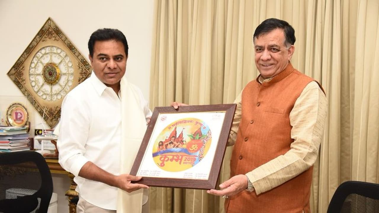 తెలంగాణ రాష్ట్ర సమితి పార్టీ కార్యనిర్వాహక అధ్యక్షులు కేటీఆర్ తో ఉత్తర ప్రదేశ్ మంత్రి సతీష్ మహానా భేటీ అయ్యారు. ఉత్తర ప్రదేశ్ వచ్చే నెల జనవరి నుండి అలహాబాద్ కుంభ మేళా జరగనున్న నేపథ్యంలో యూపీ ప్రభుత్వం తరపున మంత్రులు వివిధ రాష్ట్రాలకు చెందిన ప్రముఖులు, రాజకీయ నాయకులకు స్వయంగా ఆహ్వానిస్తున్నారు. ఇందుకోసం తెలంగాణకు వచ్చిన యూపీ మంత్రి హైదరాబాద్ లో కేటీఆర్ ను కలిశారు. కుటుంబంతో కలిసి అలహాబాద్ కుంభమేళాకు విచ్చేయాలని ఆహ్వానించారు.