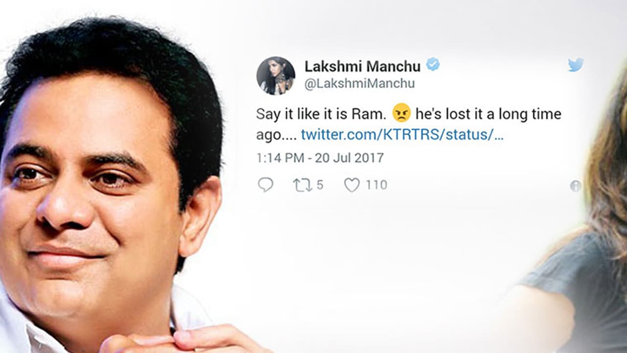 అదే నేపథ్యంలో దిగ్విజయ్ పై కామెంట్ చేసిన కేటిఆర్కు మద్దతు పలికింది సినీ నటి మంచు లక్ష్మీ. ట్వీట్టర్ వేదికగా స్పందించింది. అవును రామ్(కేటీఆర్ ను ఉద్దేశిస్తు) ఆయనకు ఎప్పుడో మతి పోయిందని ట్వీట్ చేసింది.