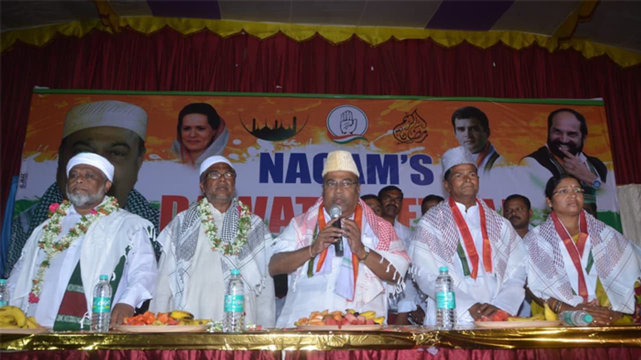 రంజాన్ పండుగ సందర్భంగా ఇఫ్తార్ విందులు జోరుగా సాగుతున్నాయి. తెలంగాణ అంతటా విందుల హడావిడి ఉంది. నాగర్ కర్నూల్ పట్టణంలో సాయి గార్డెన్ ఫంక్షన్ హాల్ లో ముస్లిం సోదరులకు నాగం జనార్దన్ రెడ్డి ఆదివారం సాయంత్రం ఇఫ్తార్ విందు ఇచ్చారు. ఈ సందర్భంగా ముస్లిం మౌజాన్ ఈమామ్ లకు శాలువాతో సత్కరించారు. ముస్లిం సోదరులకు రంజాన్ పండగా శుభాకాంక్షలు తెలిపారు.గతంలో మజీద్ లకు, ఈద్గా లకు,దర్గా లకై ఎంతో సహాయం చేసానని ఆయన అన్నారు. ఈ కార్యక్రమంలో నాగం చిరకాల ప్రత్యర్థి, వనపర్తి ఎమ్ఎల్ ఎ చిన్నారెడ్డి హాజరు కావడం చర్చనీయాంశమైంది. అలాగే కాంగ్రెస్ సీనియర్ నేత మాజీ ఎంపి మల్లు రవి కూడా పాల్గొన్నారు.