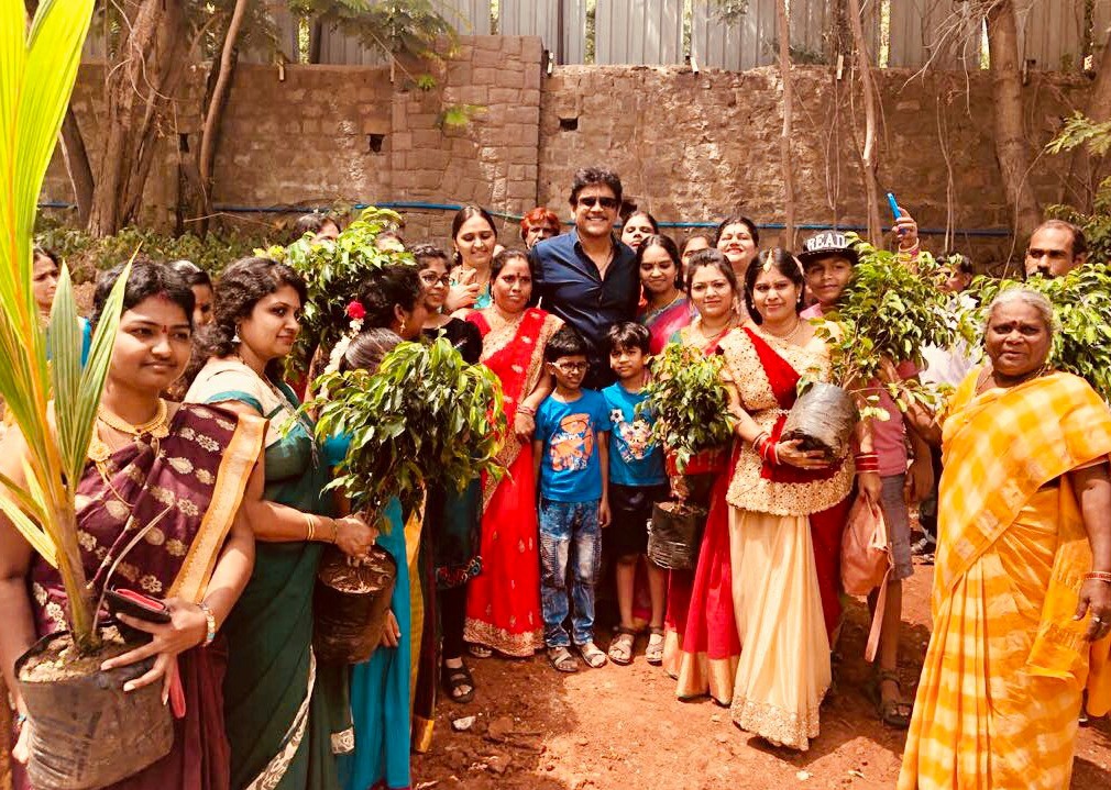 రాజ్యసభ సభ్యులు జోగినిపల్లి సంతోష్ విసిరిన ఛాలెంజ్ ని స్వీకరించిన నాగార్జున అన్నపూర్ణ స్టూడియోలోని గార్డెన్ లో చెట్లు నాటారు. స్టూడియో సిబ్బందితో కలిసి చెట్లు నాటి ఆ పోటోలను ట్విట్టర్ లో పోస్ట్ చేశారు. అనంతరం మరికొంతమందికి గ్రీన్ ఛాలెంజ్ విసిరారు. తన కోడులు సమంతాతో పాటు బాలీవుడ్ డైరెక్టర్ కరణ్ జోహార్, తమిళ్ నటులు కార్తీ, ధనుష్ లకు ఈ ఛాలెంజ్ విసిరారు.