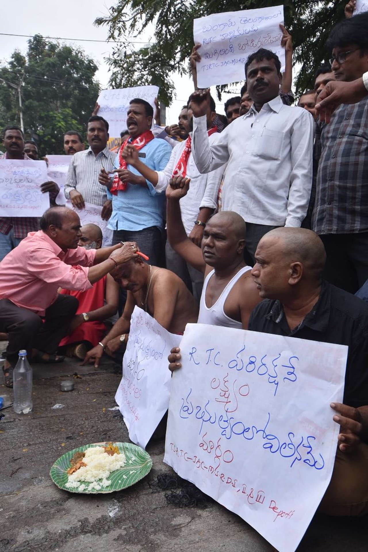 ఇకపోతే ఆర్టీసీ సమ్మె 12వ రోజు ఉధృతంగా కొనసాగుతుంది. రాష్ట్రవ్యాప్తంగా ఆర్టీసీ కార్మికులు తమ నిరసన వ్యక్తం చేశారు. కొన్ని డిపోల ముందు ఆర్టీసీ కార్మికులు గుండు గీయించుకుని నిరసన తెలిపారు.
