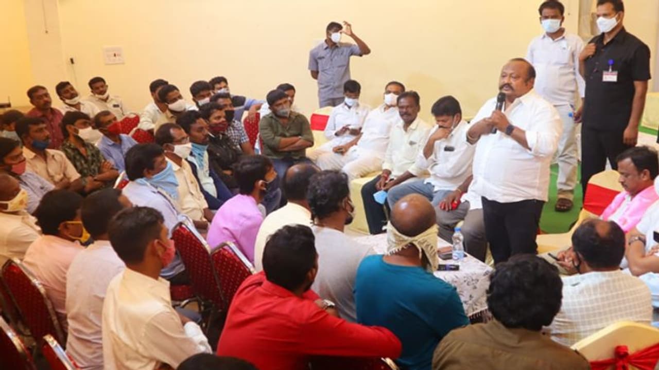 హుజురాబాద్ ఉపఎన్నికలో టీఆర్ఎస్ అభ్యర్థి గెల్లు శ్రీనివాస్ గెలుపుకు సహకరిస్తామని పట్టణ నాయి బ్రాహ్మణ కులస్తులు ఏకగ్రీవ తీర్మానం చేశారు. అనంతరం తీర్మానం ప్రతిని మంత్రి గంగుల కమలాకర్కు సమర్పించారు. బుధవారం హుజురాబాద్ సిటీ సెంటర్ హాల్ మందిరంలో నాయి బ్రాహ్మణ కులస్తుల ఆత్మీయ సమ్మేళన సమావేశం జరిగింది... ఈ సమావేశానికి టీఆర్ఎస్ అభ్యర్థి గెల్లు శ్రీనివాస్ యాదవ్తో కలిసి మంత్రి గంగుల కమలాకర్ హాజరయ్యారు. ఈ సందర్భంగా మంత్రి మాట్లాడుతూ.. బీసీ కులాల్లో వెలుగులు నింపేందుకు తెలంగాణ ప్రభుత్వం కృషి చేస్తుందని స్పష్టం చేశారు.