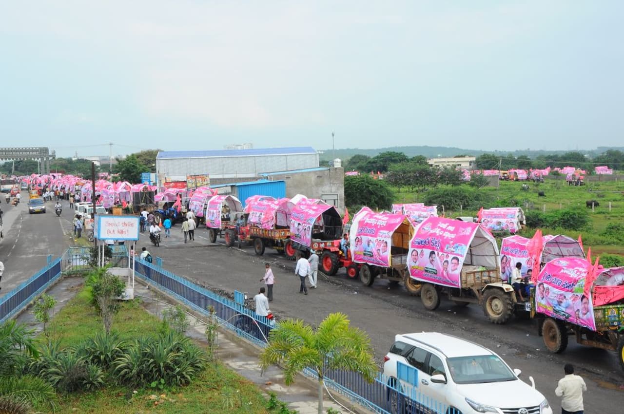 ప్రగతి నివేదన సభకు గులాబీ ట్రాక్టర్లు ఇలా.. (ఫొటోలు)