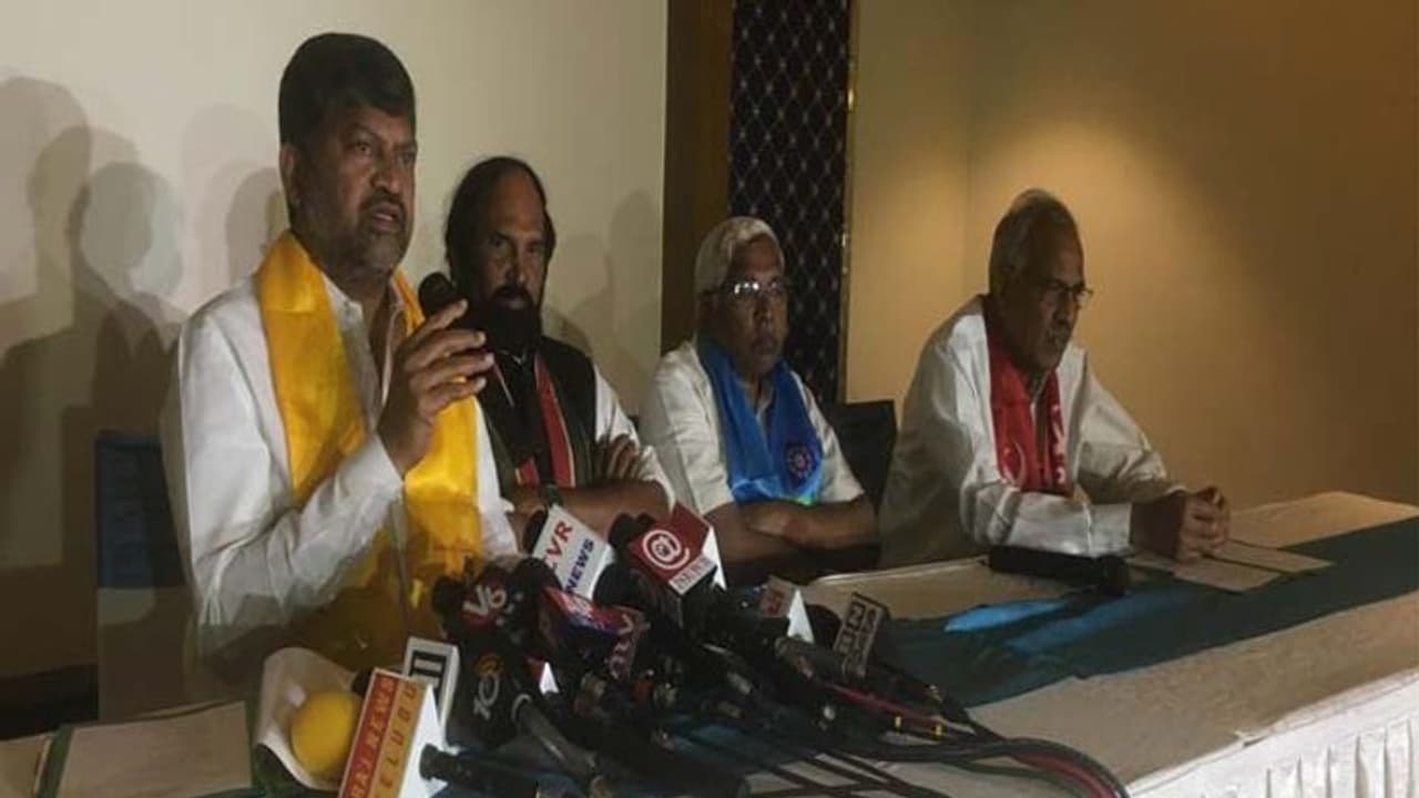హైదరాబాద్: ప్రజాఫ్రంట్ కామన్ మినిమం ప్రోగ్రామ్ను విడుదల చేసింది. ఈ ప్రజా ఫ్రంట్ కు కన్వీనర్ గా టీజేఎస్ అధినేత కోదండరామ్ కొనసాగనున్నారు. ఈ కామన్ మినిమం ప్రోగ్రామ్ను కన్వీనర్ కోదండరాం, పీసీసీ చీఫ్ ఉత్తకుమార్ రెడ్డి, టీటీడీపీ అధ్యక్షుడు ఎల్. రమణ విడుదల చేశారు.
