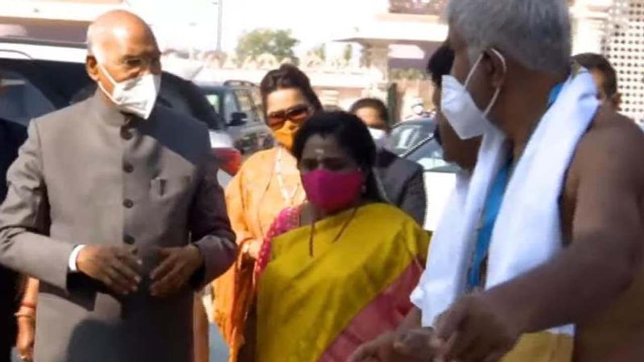 భగవత్ రామానుజుల సహస్రాబ్ధి సమారోహం కార్యక్రమంలో (ramanuja sahasrabdi samaroham) పాల్గొనేందుకు గాను ముచ్చింతల్లోని (muchintal) చినజీయర్ స్వామి ఆశ్రమానికి (chinna jeeyar swamy) రాష్ట్రపతి రామ్నాథ్ కోవింద్ (ramnath kovind) చేరుకున్నారు. ఈ సందర్భంగా అక్కడ సమతామూర్తి కేంద్రం (samantha murthy statue) , ఆలయాలు, బృహన్మూర్తి విగ్రహాన్ని ఆయన సందర్శించనున్నారు.