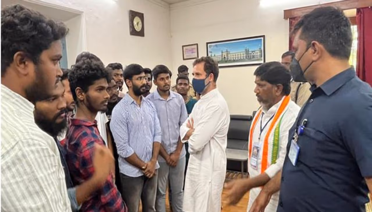 కాంగ్రెస్ అగ్రనేత రాహుల్ గాంధీ చంచల్ గూడ జైలులో ఎన్ఎస్యూఐ నాయకులను పరామర్శించారు. చంచల్గూడ జైలులో రిమాండ్లో ఉన్న ఎన్ఎస్యూఐ రాష్ట్ర అధ్యక్షుడు బల్మూరి వెంకట్తో సహా 18 మంది నాయకులను రాహుల్ గాంధీతో ములాఖత్ అయ్యారు.