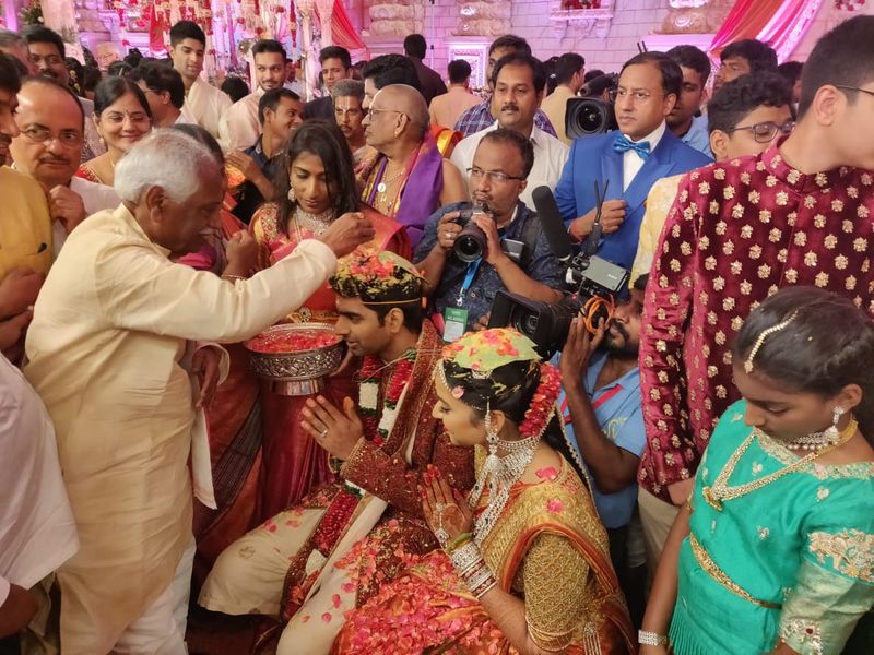ఈ వేడుకకు ఉప రాష్ట్రపతి వెంకయ్య నాయుడు, మహారాష్ట్ర గవర్నర్ విద్యాసాగర్ రావు, తెలంగాణ ముఖ్యమంత్రి కేసీఆర్, హోంమంత్రి మహమూద్ అలీ, సుప్రీంకోర్ట్ రిటైర్డ్ న్యాయమూర్తి జస్టిస్ జాస్తి చలమేశ్వర్, సూపర్స్టార్ కృష్ణ దంపతులు, చిరంజీవి దంపతులతో పాటు పలువురు సీని, రాజకీయ, పారిశ్రామిక రంగాల ప్రముఖులు హాజరై నూతన దంపతులను ఆశీర్వదించారు.