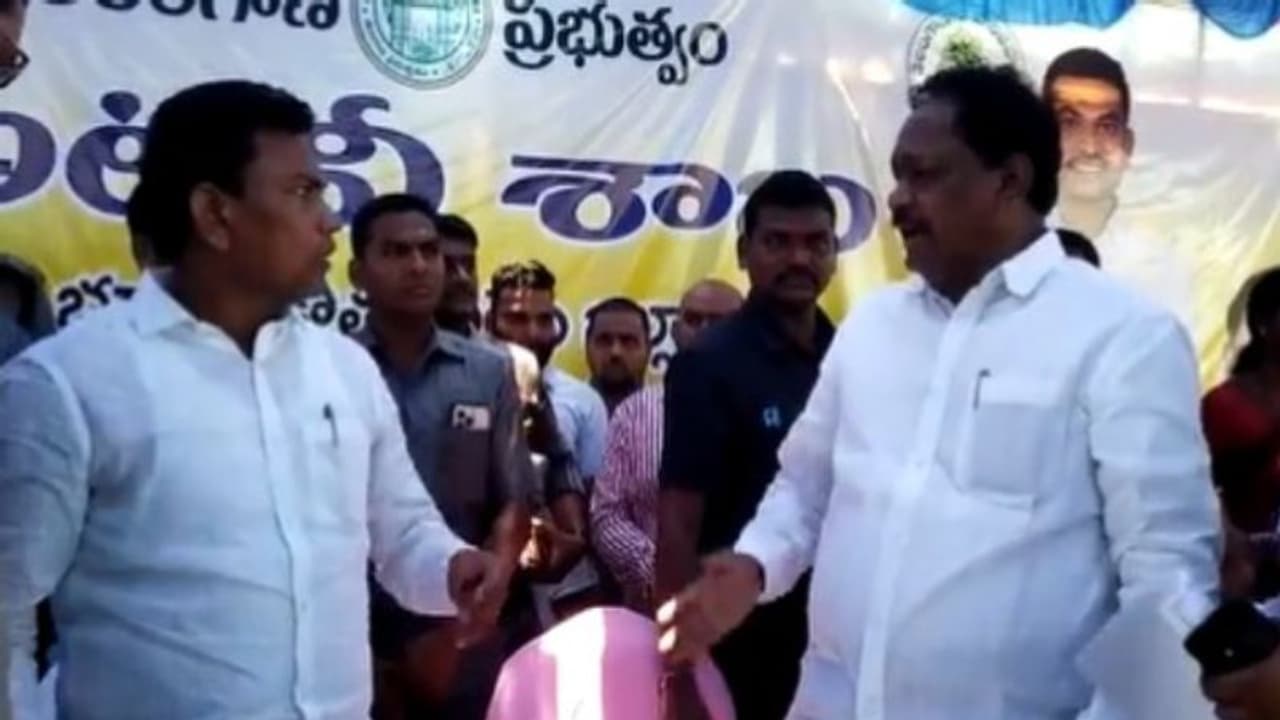 ఈ కార్యక్రమానికి మంత్రి ఇంద్రకరణ్ రెడ్డి, ఎమ్మెల్యేలు రేగా కాంతారావు, పోదెం వీరయ్యలు హాజరయ్యారు. ఈ కార్యక్రమంలో రేగా కాంతారావు సీఎం కేసీఆర్ను పొగడ్తలతో ముంచెత్తారు. మళ్లీ తమ పార్టీనే అధికారంలోకి వస్తుందని అన్నారు. అయితే రేగా కాంతారావు పార్టీ ప్రస్తావన తేవడంతో రేగా కాంతారావును పోదెం వీరయ్య అడ్డుకున్నారు. ఈ క్రమంలో ఇరువురు నేతల మధ్య వాగ్వాదం చోటుచేసుకుంది. అయితే ఇద్దరు నేతల మధ్య వాగ్వాదం సమయంలో మంత్రి ఇంద్రకరణ్ రెడ్డి అక్కడి నుంచి పక్కకు వెళ్లిపోయారు.