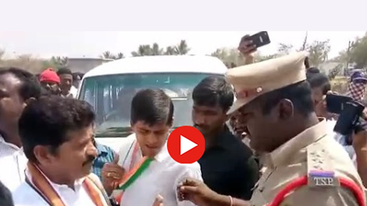 బిటి రోడ్డు శంకుస్థాపనలో వివాదం కాంగ్రెస్, పోలీసుల మధ్య తోపులాట తోపులాటలో కూలిన శంకుస్థాపన ఫలకం రేవంత్ అరెస్టుకు పోలీసుల యత్నం బైక్ పై అక్కడినుంచి ఎస్కేప్ అయిన రేవంత్