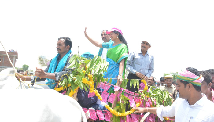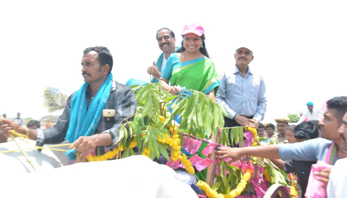డప్పు చప్పుళ్లు మంగళహారతులతో పండగకు పుట్టింటికి వచ్చిన ఆడబిడ్డలా నిజామాబాద్ ఎంపి కల్వకుంట్ల కవిత కు ఘన స్వాగతం పలికారు మహిళలు. పట్టుపట్టి ఎడ్లబండిని ఎక్కించి..కవిత ను ఊరేగించిన తీరు అవధుల్లేని వారి సంతోషాన్ని తెలిపింది. ఈ అపూర్వ సన్నివేశం జగిత్యాల రూరల్ మండలం గుల్ల పేటలో ఆవిష్కృతమైంది. పలుచోట్ల ఎంపి కవిత వాహనాన్ని ఆపి మహిళలు ఆలింగనం చేసుకున్నారు.