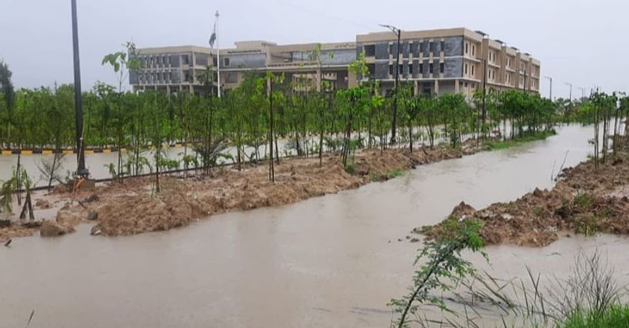 సిరిసిల్లలో కురుస్తున్న భారీ వర్షాలతో ఇటీవల ముఖ్యమంత్రి కేసీఆర్ చేతుల మీదుగా ప్రారంభించబడిన నూతన కలెెక్టర్ కార్యాలయం జలదిగ్భందమయ్యింది. కలెక్టరేట్ చూట్టూ నీరు చేరడంతో ఆ ప్రాంతమంతా చెరువును తలపిస్తోంది.