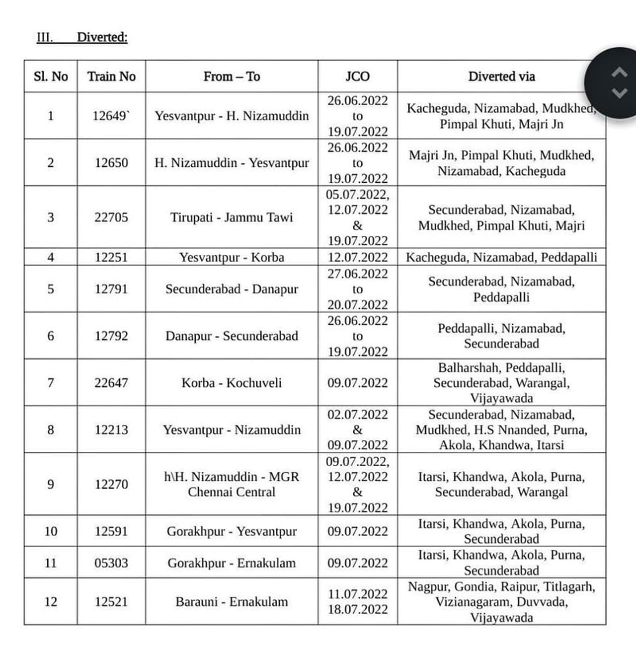 దారి మళ్లించిన రైళ్ల వివరాలు..