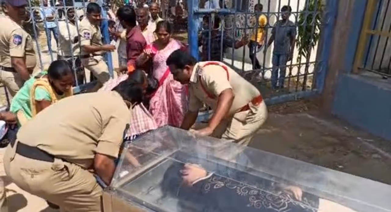 మృతదేహంతో కాలేజీ ముందు ధర్నాకు చేయాలని ప్లాన్ చేశారు. అయితే ఈ విషయాన్ని గుర్తించిన పోలీసులు సంధ్య మృతదేహన్ని తిరిగి మార్చురీలోకి తీసుకెళ్లకుండా విద్యార్ధి సంఘాలు అడ్డుకొన్నారు. మృతదేహం భద్రపర్చిన శవపేటికి ముందు ఓ వ్యక్తి పడుకొని అడ్డుపడ్డాడు. అతడిని ఓ కానిస్టేబుల్ కాలితో తీవ్రంగా తన్నాడు.