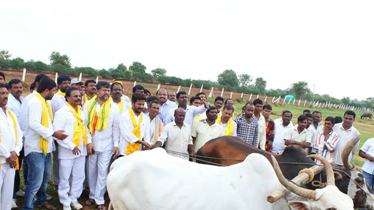 కెకె కొనుగోలు చేసిన భూములలో టిడిపి జెండాలు పాతింది. ఆ భూమిలో రైతులతో కలిసి రేవంత్, రమణ నాగలి పట్టి భూమి దున్ని నిరసన తెలిపారు. ఈ సందర్భంగా రేవంత్ రెడ్డి మాట్లాడుతూ గోల్డ్ స్టోన్ ప్రసాద్ ఆక్రమించిన ప్రభుత్వ భూములను రైతులకు అందజేయాలి. లేదంటే రైతుకు భూమి అందించే వరకు రైతులకు వద్దతుగా ఆందోళన ఉధృతం చేస్తామన్నారు.
