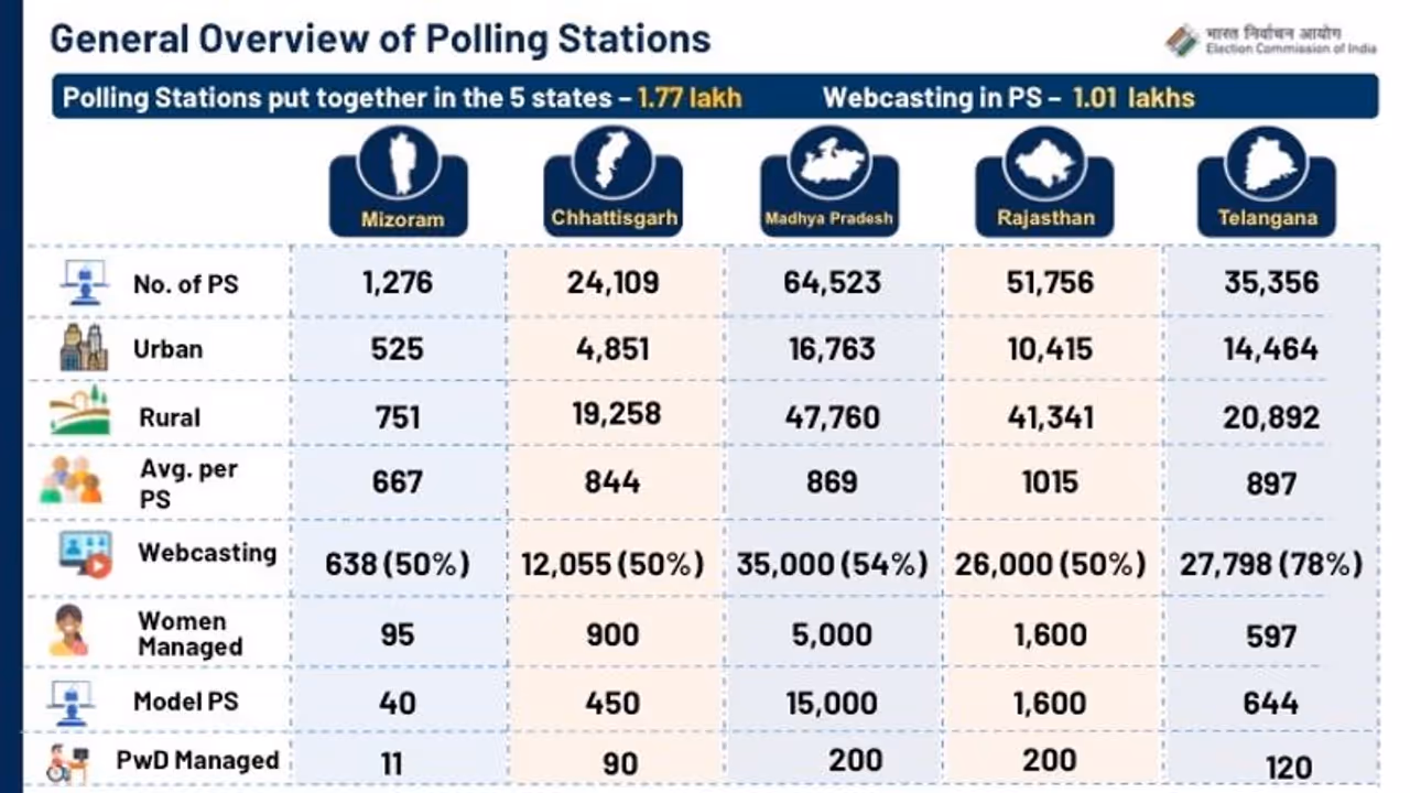 >> మహిళల నిర్వహించే పోలింగ్ స్టేషన్లు-597, మోడల్ పోలింగ్ స్టేషన్లు-644, పీడబ్ల్యూడీకి చెందినవి-120.