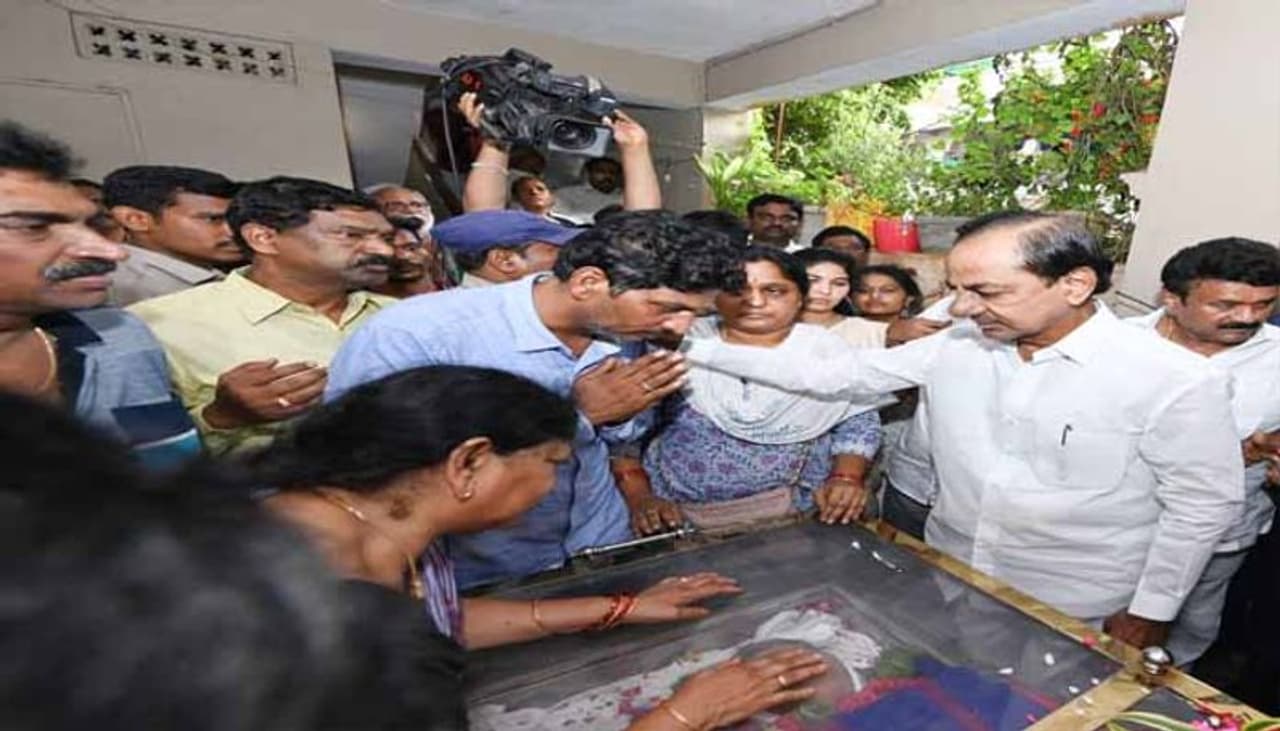 హైదరాబాద్: ప్రజాయుద్దనౌక గద్దర్ పార్థీవ దేహం వద్ద పూలమాల వేసి తెలంగాణ సీఎం కేసీఆర్ నివాళులర్పించారు. సోమవారంనాడు సాయంత్రం గద్దర్ బౌతిక కాయాన్ని ఆయన ఇంటికి తీసుకువచ్చారు. గద్దర్ నివాసానికి చేరుకున్న కేసీఆర్ ఆయన బౌతిక కాయానికి నివాళులర్పించారు. గద్దర్ కుటుంబ సభ్యులను కేసీఆర్ ఓదార్చారు. వారికి ధైర్యం చెప్పారు. సీఎం కేసీఆర్ వెంట హరీష్ రావు, తలసాని శ్రీనివాస్ యాదవ్, మహమూద్ అలీ తదితరులున్నారు.గద్దర్ కునివాళి అర్పించిన తర్వాత కేసీఆర్ తిరిగి ప్రగతి భవన్ కు వెళ్లిపోయారు.