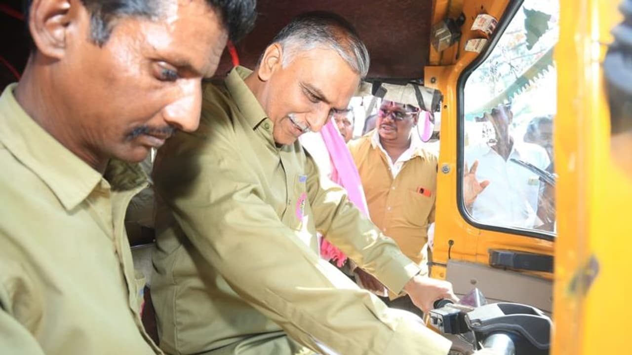 Telangana finance minister T Harish Rao: తెలంగాణ ఆర్థిక, ఆరోగ్య శాఖ మంత్రి తన్నీరు హరీశ్ రావు ఆటో డ్రైవర్ గా మారారు. సిద్దపేటలో ఆటో డ్రైవర్ డ్రెస్ లో ఆటో నడుపుతూ కనిపించారు. మీరు నమ్మకపోయిన ఇది జరిగింది ! దీనికి సంబంధించిన వీడియో వైరల్ గా మారింది.