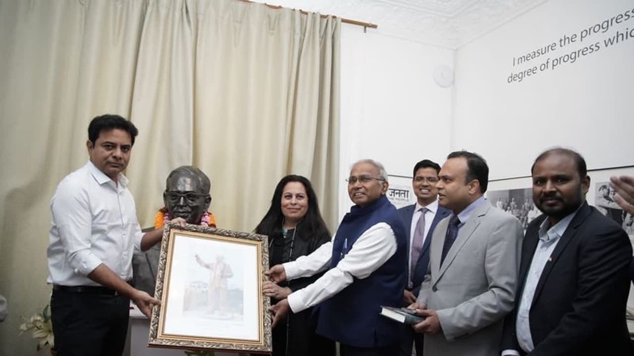 అంబేద్కర్ భారతదేశానికి చేసిన సేవలను ఎత్తిచూపడంలో తెలంగాణ ప్రభుత్వం చేసిన అసాధారణ కృషిని గుర్తించిన ఎఫ్ ఏబీఓ యూకే కేటీఆర్ ను సత్కరించింది. ఎఫ్ఏబీఓ యూకే అధ్యక్షుడు సంతోష్ దాస్ విలియం గౌల్డ్, క్రిస్టోఫ్ జాఫ్రెలాట్తో కలిసి రాసిన 'అంబేద్కర్ ఇన్ లండన్' పుస్తకం సంతకం చేసిన కాపీని మంత్రికి అందజేశారు. డాక్టర్ బీఆర్ అంబేడ్కర్ విలువలను, సేవలను నొక్కిచెప్పేందుకు తెలంగాణ ప్రభుత్వం చేస్తున్న విస్తృత ప్రయత్నంలో భాగంగానే లండన్ లోని అంబేడ్కర్ మ్యూజియంను పరిశ్రమల శాఖ మంత్రి సందర్శించారు.