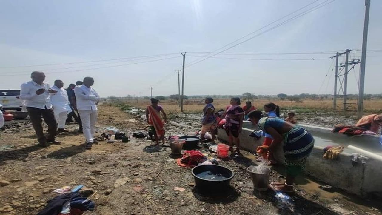 మహిళలు - కిలో మీటర్ దూరం నుండి ఇక్కడకు వచ్చి నీళ్లు పట్టుకుంటాం సర్. కరెంట్ వస్తే బిందలతో నీళ్లు తెచ్చుకుంటాం.