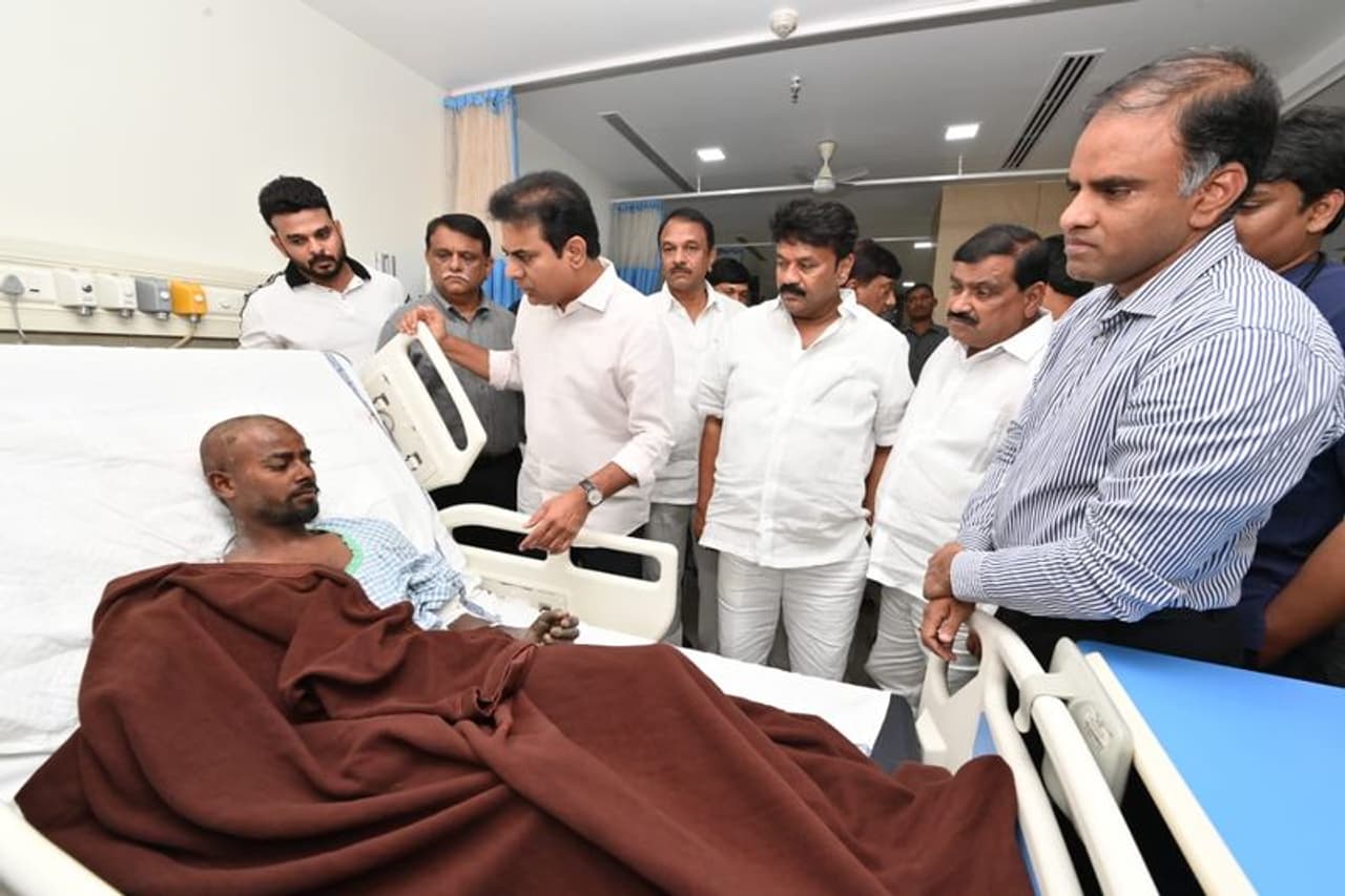 ఎల్బీ నగర్ వద్ద ఫ్లై ఓవర్ నిర్మాణ పనుల్లో ప్రమాదం జరిగి గాయపడ్డ కార్మికులను పురపాలక శాఖ మంత్రి కేటీఆర్ హాస్పిటల్ వెళ్లి పరామర్శించారు. ప్రభుత్వం వారికి అండగా ఉంటుందని, ట్రీట్మెంట్కు అవసరైన ఏర్పాట్లన్నీ చేస్తామని భరోసా ఇచ్చారు.