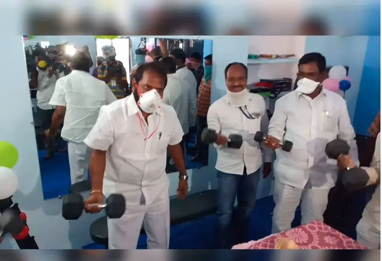 తెలంగాణ ఎక్సయిజ్ శాఖ మంత్రి శ్రీనివాస్ గౌడ్ ఇలా లాక్ డౌన్ నియమాలను తుంగలో తొక్కుతూ తన సొంత నియోజకవర్గం మహబూబ్ నగర్ లో నూతనంగా ఏర్పాటు చేసిన జిమ్ ను ప్రారంభించారు.