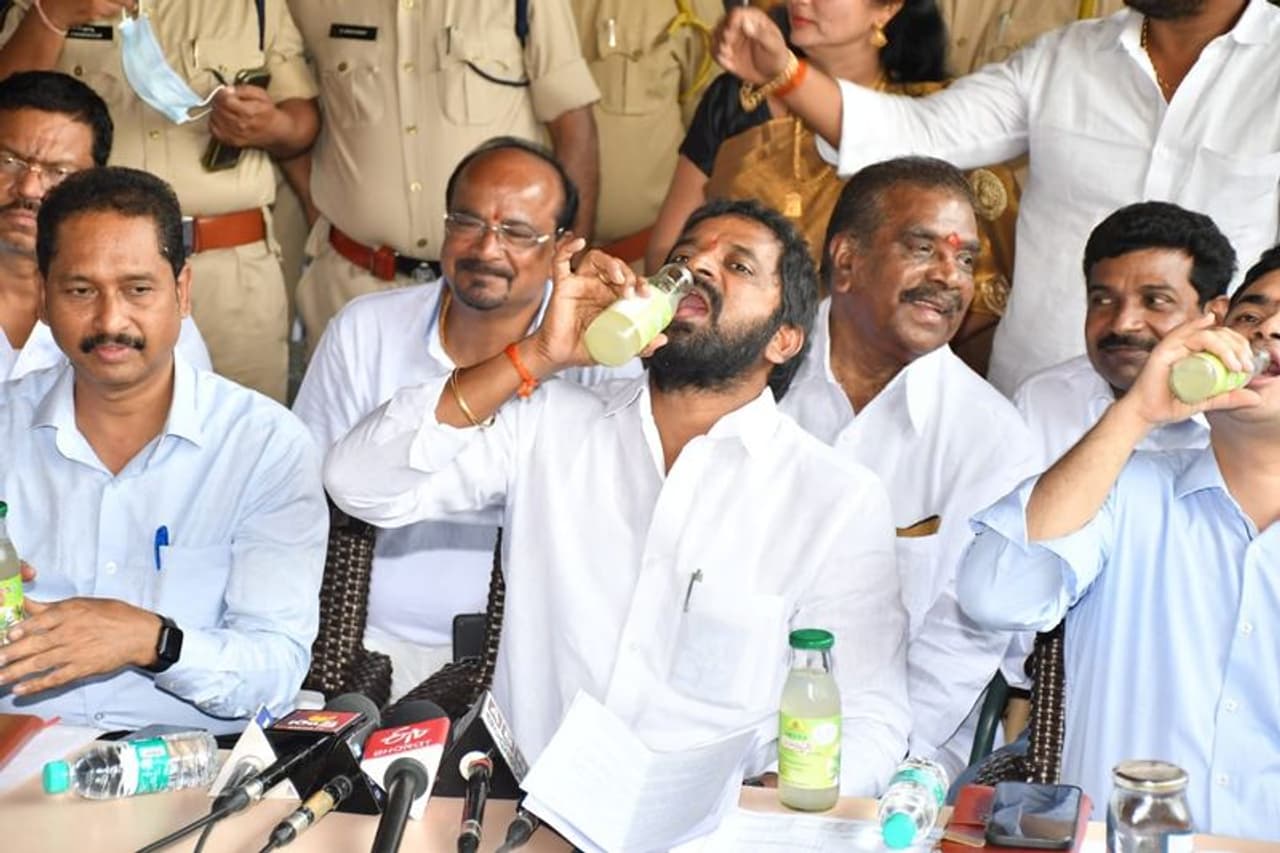 Telangana: హైదరాబాద్ లోని నెక్లెస్ రోడ్డు లో ముఖ్యంత్రి కేసీఆర్ ఆదేశాల మేరకు ఆబ్కారీ శాఖ ఆధ్వర్యంలో ప్రతిష్టాత్మకంగా నిర్మిస్తున్న 'నీరా కేఫ్' పనులను రాష్ట్ర ఆబ్కారీ, క్రీడా, పర్యాటక-సాంస్కృతిక శాఖ మంత్రి శ్రీనివాస్ గౌడ్.. రాష్ట్ర గౌడ సంఘాల ప్రతినిధులు, ఆబ్కారీ, పర్యాటక శాఖల ఉన్నతాధికారుల తో కలసి పరిశీలించారు. అక్కడ ఆయన నీరాను కూడా సేవించారు.