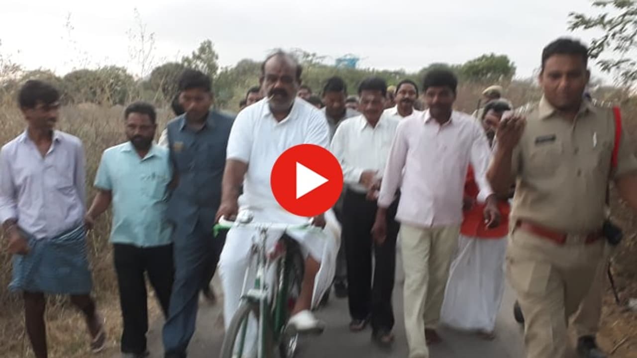 ఈ సందర్భంగా స్పీకర్ సైకిల్ పై వెళుతున్న గ్రామస్తుడి తో కాసేపు మాట్లాడి ఆయన సైకిల్ తీసుకుని తొక్కారు. గ్రామ పొలిమేర వరకు సుమారు రెండు కిలోమీటర్ల మేర సైకిల్ మీద వెళ్లి గ్రామాన్ని పరిశీలించారు.