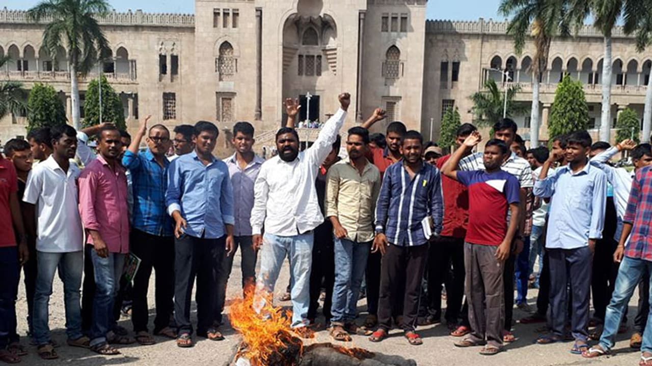 ఈ డిమాండ్ తో తెలుగు అకాడమీ పుస్తకాలు లభ్యమయ్యేలా చూడాలని, ప్రస్తుతం అందుబాటులో ఉన్న నూతన సిలబస్ నే TRT లో సిలబస్ గ ప్రవేశ పెట్టాలని కోరుతూ ఓయు జెఎసి ఆధ్వర్యంలో సిఎం కేసిఆర్ దిష్టిబొమ్మను ఉస్మానియా ఆర్ట్స్ కాలేజీలో కాలబెట్టారు. అలాగే D.El.Ed (డిప్లమా ఇన్ ఎలిమెంటరీ ఎడ్యుకేషన్ )చివరి సంవత్సరం చదువుతున్న విద్యార్థులకు TRT లో అవకాశం కల్పించాలని డిమాండ్ చేశారు. ఓయు జెఎసి నేత కోటూరి మానవత్ రాయ్ నాయకత్వంలో ఈ ఆందోళన జరిగింది. రానున్న రోజుల్లో టిఆర్టీ పోస్టుల సంఖ్య పెంచి సవరణ నోటిఫికేషన్ జారీ చేయకపోతే ఆందోళన తీవ్రతరం చేసి ఈ సర్కారుకు యువత తడాఖా ఏంటో చూపుతామని కోటూరి హెచ్చరించారు.