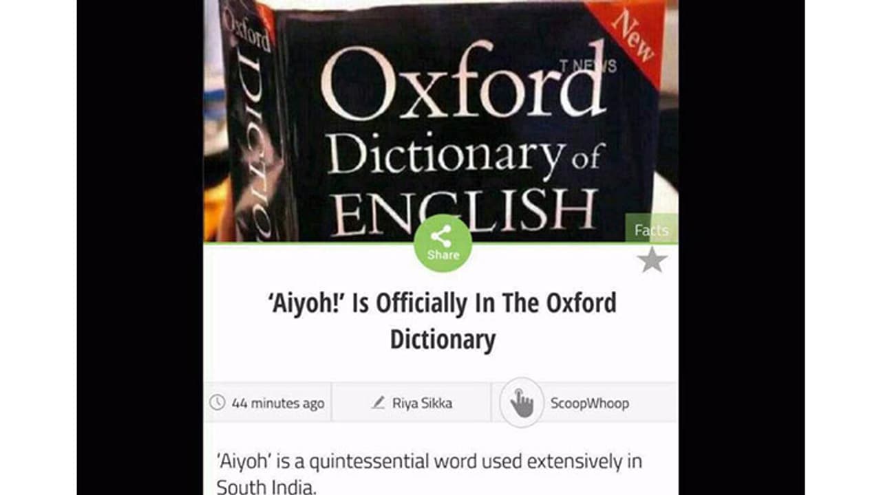 నిజానికి అయ్యో అనే మాట దక్షిణ భారత దేశంలోని తెలుగు, కన్నడం, మలయాలం, తమిళం మాట్లాడేవారిది. దక్షిణాది భాషల్లో అయ్యో అనే మాటను తరచుగా వింటుంటాం. ఇక నుంచి ఈమాటకు ఆంగ్లంలో కూడా అర్థం ఉంటుంది.