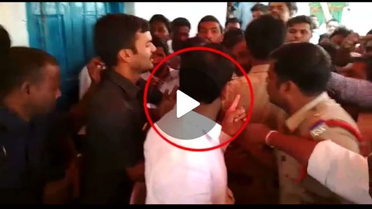 కొడంగల్ నియోజకవర్గంలోని దౌలతాబాద్ మండలంలో ఉద్రిక్త వాతావరణం నెలకొంది. ఆ మండలంలోని కుదురుమళ్ల అనే గ్రామంలో టిఆర్ఎస్ ఎమ్మెల్సీ పట్నం నరేందర్ రెడ్డికి స్థానిక కాంగ్రెస్ నేతలు చెమటలు పట్టించారు. గ్రామంలో కళ్యాణ లక్ష్మి, షాదీముబారక్ చెక్కుల పంపిణీ చేపట్టేందుకు ప్రయత్నించిన నరేందర్ రెడ్డిపై కాంగ్రెస్ నేతలు తిరగబడ్డారు. స్థానిక ఎమ్మెల్యే రేవంత్ రెడ్డి సోదరుడు తిరుపతిరెడ్డితోపాటు కార్యకర్తలు, నాయకులు పెద్ద ఎత్తున జమ అయ్యారు. ఎలాంటి ప్రొటోకాల్ లేని ఎమ్మెల్సీ నరేందర్ రెడ్డి అధికారికంగా ఎలా చెక్కుల పంపిణీ చేపడతారని నిలదీశారు. ఈ క్రమంలో రెండు పార్టీల మధ్య తీవ్ర వాగ్వాదం, గొడవ జరిగింది. అయితే పట్నం నరేందర్ రెడ్డి చెక్కుల పంపిణీ సభలో ఉండగానే కాంగ్రెస్ కార్యకర్తలు అక్కడికి చొచ్చుకునిపోయి గొడవకు దిగారు. దీంతో నరేందర్ రెడ్డి తీవ్ర అసహనం వ్యక్తం చేశారు. సభా ప్రాంగణంలో గొడవ చేస్తున్న కాంగ్రెస్ కార్యకర్తలను అక్కడినుంచి పంపేందుకు పోలీసులు ఎంతగా శ్రమించారో వీడియోలో చూడొచ్చు.