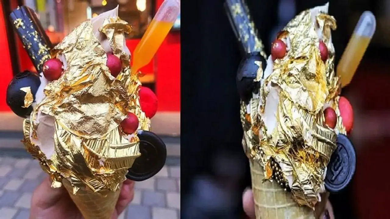 ఏది చూస్తే దిమ్మతిరిగి మైండ్ బ్లాంక్ అవుతుందో.. నోట్లో లాలాజలం గంగాప్రవాహంలా ఊటలు బారుతుందో అదే గోల్డెన్ ఐస్ క్రీం. అదీ 24 క్యారట్ గోల్డ్ తో చేసింది. చల్ల చల్లగా నోట్లో కరిగిపోతుంటే.. దాంతోపాటు బంగారమూ కడుపులోకి జారుతుంటే.. ఆహా.. ఆ మజాయే వేరు. అలాంటి అనుభూతిని కలిగిస్తోంది. హైదరాబాద్ లోని ఓ ఐస్ క్రీం పార్లర్.
