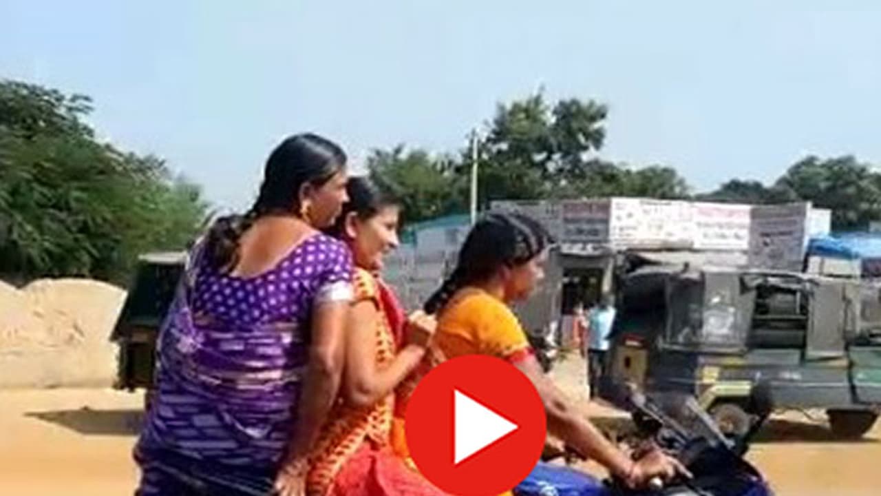 ఒకే బైక్ మీద దూసుకుపోతున్న ముగ్గురు మహిళలు హైదరాబాద్ లో దుమ్ము రేపిన ఆంటీలు సోసల్ మీడియాలో చక్కర్లు కొడుతున్న వీడియో