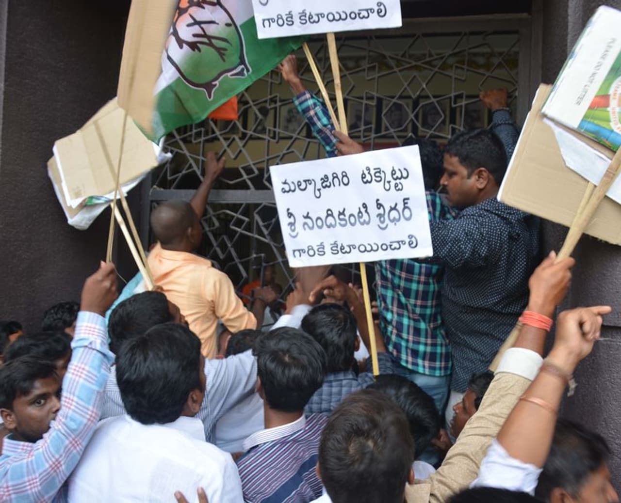 గాంధీ భవన్ వద్ద అసంతృప్తుల ధర్నా