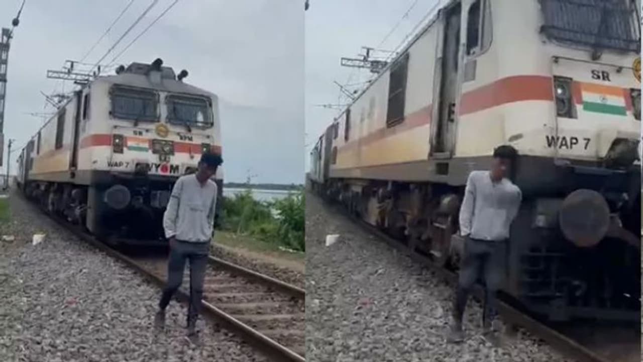 రైలు వస్తుండగా రీల్స్ చిత్రీకరణ చేయడానికి ప్రయత్నించి.. ప్రాణాలమీదకు తెచ్చుకున్నాడు.