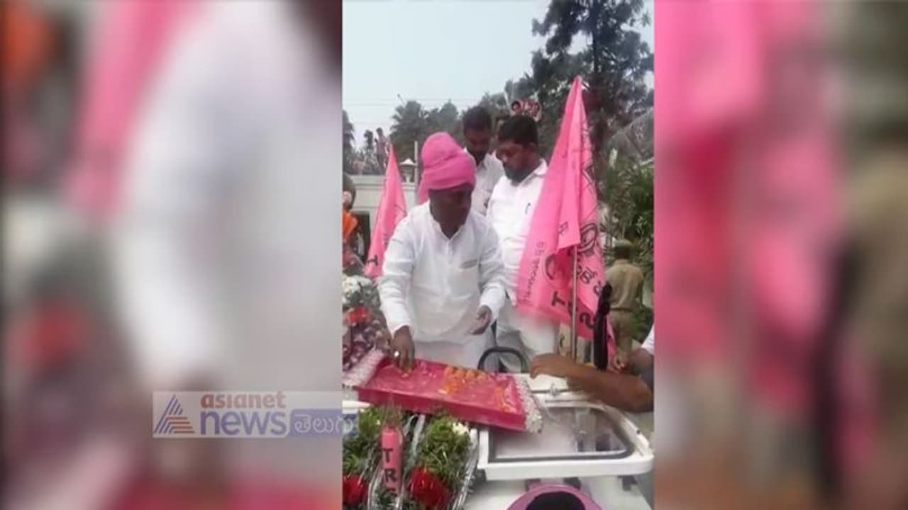 స్వీట్స్ పంచుతూ టీఆరెస్ నేతల సంబరాలు