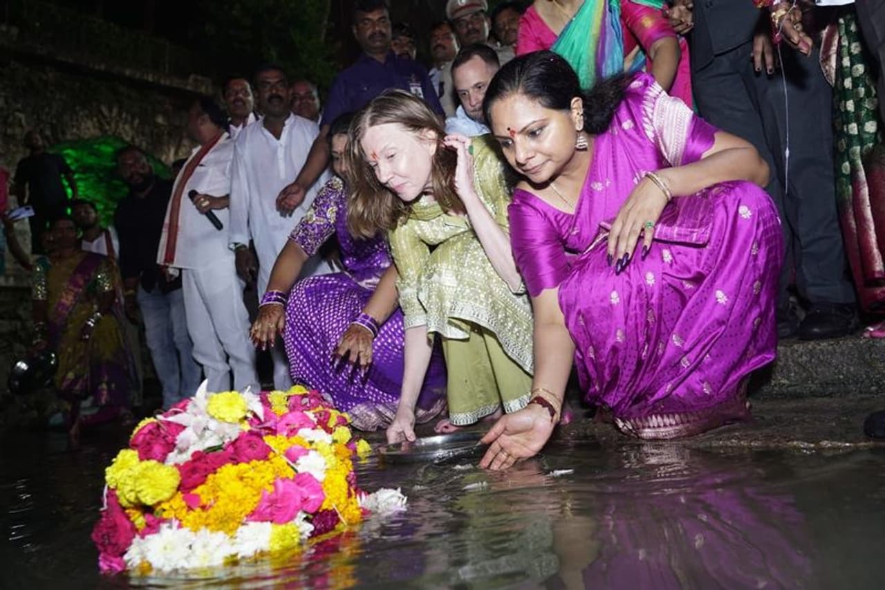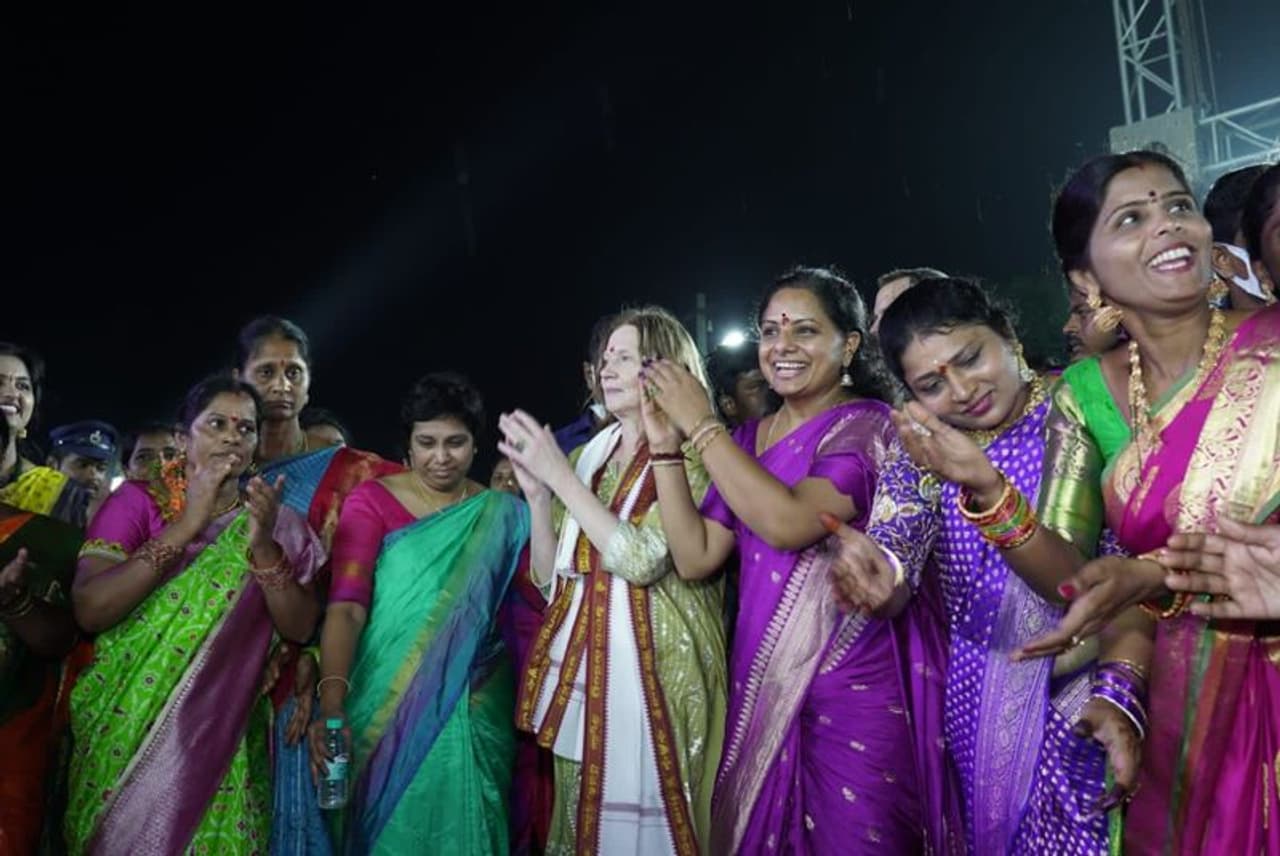 ఈ సందర్భంగా అమెరికన్ కాన్సూలేట్ జనరల్ జెన్నీఫర్ లార్డాన్, కవిత కలిసి బతుకమ్మను పేర్చి ఆడి పాడారు. అనంతరం లార్డాన్తో కలిసి ఆమె రామాలయంలో ప్రత్యేక పూజలు నిర్వహిస్తున్నారు. సరిగ్గా అప్పుడే తెలంగాణ గవర్నర్ తమిళిసై సౌందరరాజన్ ఆలయంలో ప్రత్యక్షమయ్యారు. ఎలాంటి ముందస్తు సమాచారం ఇవ్వకుండా గవర్నర్ అక్కడికి రావడంతో ఎమ్మెల్సీ కవితతో పాటు అధికారులు షాక్కు గురయ్యారు. ఆలయంలో కవితను అప్యాయంగా పలకరించారు తమిళిసై . పూజా అనంతరం గవర్నర్ అక్కడి నుంచి రాజ్భవన్కి వెళ్లిపోయారు. ఢిల్లీ పర్యటన ముగించుకుని శంషాబాద్ విమానాశ్రయానికి చేరుకున్న తమిళిసై నేరుగా ఆలయానికి వచ్చినట్లుగా తెలుస్తోంది. ప్రస్తుతం కవితతో గవర్నర్ మాట్లాడుతోన్న వీడియో సోషల్ మీడియాలో వైరల్ అవుతోంది.