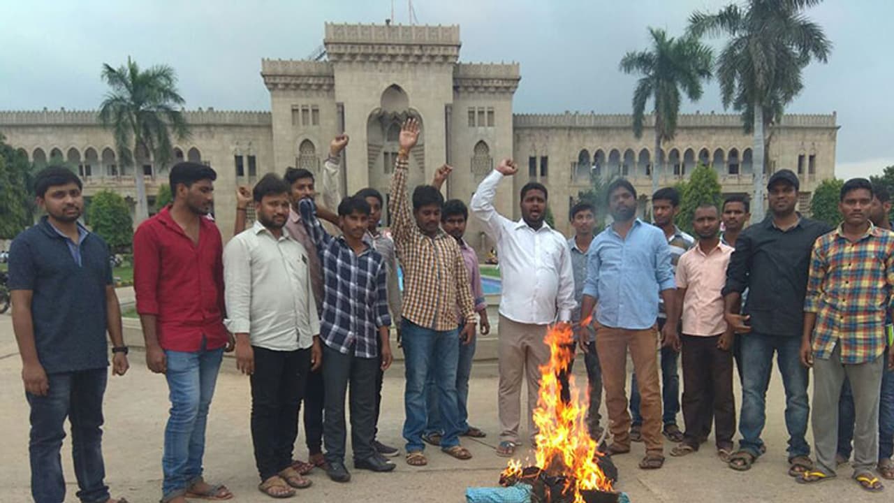 మంత్రి పదవికి పట్నం రాజీనామా చేయాలి ఓయులో మహేందర్ రెడ్డి దిష్టబొమ్మ దగ్థం టిఆర్ఎస్ లో ద్రోహులకు అందలమెక్కించారు టివియువి ఆగ్రహం