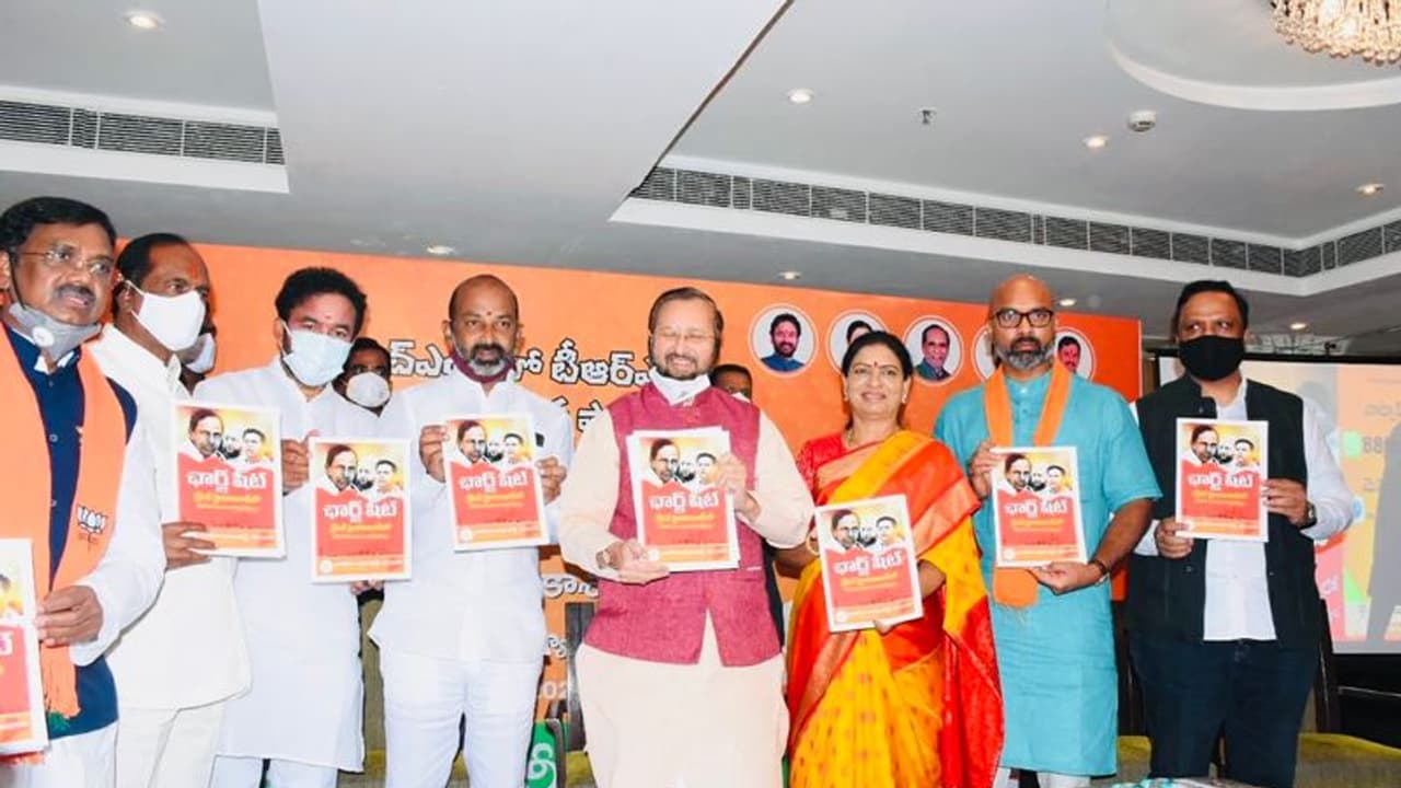 హైదరాబాద్:టీఆర్ఎస్ ప్రభుత్వం అవినీతిలో కూరుకుపోయిందని కేంద్ర మంత్రి ప్రకాష్ జవదేకర్ ఆరోపించారు. హైద్రాబాద్లో టీఆర్ఎస్ వైఫల్యాలపై బీజేపీ ఆదివారం నాడు చార్జీషీట్ ను విడుదల చేసింది. కేంద్ర మంత్రి ప్రకాష్ జవదేకర్ చార్జీషీట్ ను బీజేపీ కార్యాలయంలో విడుదల చేశారు.