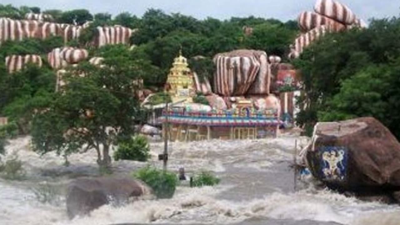 మెదక్ జిల్లాలోని ప్రసిద్ధ ఏడుపాయల వన దుర్గా భవాని ఆలయం జలదిగ్బంధంలో చిక్కుకుంది. సింగూర్ ప్రాజెక్టు నుంచి నీటిని దిగువకు విడుదల చేయడంతో మంజీరా నది ఉద్ధృతంగా ప్రవహిస్తోంది. దీంతో మధ్యతరహా ఏడుపాయల వనదుర్గ ప్రాజెక్టు పొంగి పొర్లుతోంది.