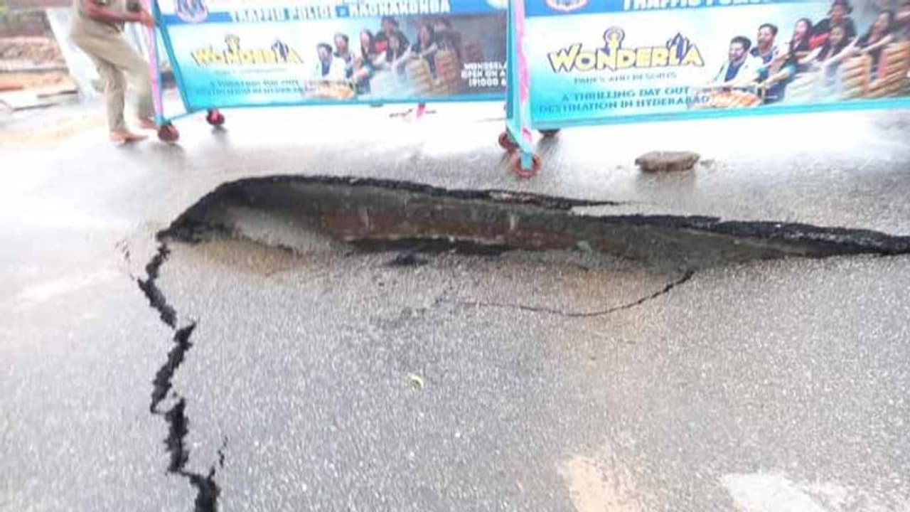 భారీ వర్షానికి స్టీల్ బ్రిడ్జి నిర్మాణం కోసం తవ్విన రోడ్డు కుంగిపోయింది. దీంతో హైద్రాబాద్ శంకర్ మఠ్ నుండి వీఎస్టీకి వెళ్లే మార్గంలో వాహనాల రాకపోకలను నిలిపివేశారు.