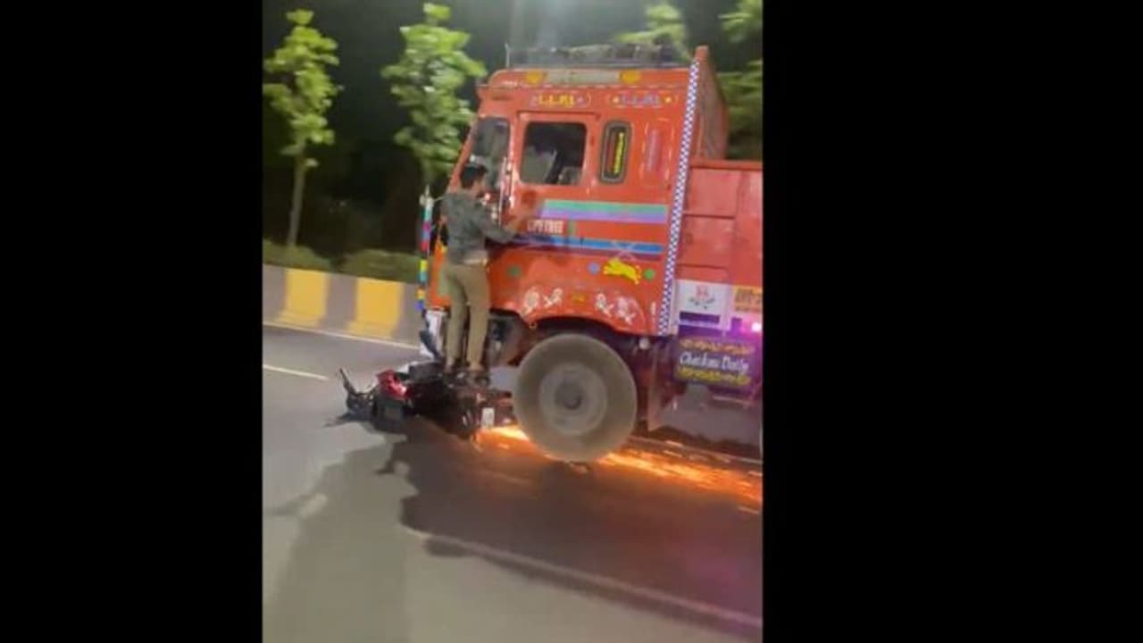 వివరాల్లోకెళ్లే.. లారీ బీభత్సం సృష్టించిన ఘటన హైదరాబాద్ లోని ఒవైసీ హాస్పిటల్ నుంచి ఎల్బీ నగర్ వెళ్లే మార్గంలో చోటుచేసుకుంది. ఓ లారీ డ్రైవర్ ఐఎస్ సదన్ పరిధిలో ఆదివారం రాత్రి ఓ బైక్ ను వేగంగా ఢీకొట్టాడు. దీంతో ఆ బైక్ లారీ ముందు చక్రాల మధ్యలో ఇరుక్కొని పోయింది. అయినా .. ఆ లారీ డ్రైవర్ తన లారీని ఆపకుండా ముందుకు వెళ్లిపోయాడు. ఈ క్రమంలో బైక్ రోడ్డుకు రాక్కుంటూ.. మెరుగులు వస్తున్నా.. ఇతర వాహనాదారులు ఆపమని అరుస్తున్నా.. అలాగే.. బైక్ ను కిలోమీటర్ మేర ఈడ్చుకెళ్లాడు. ఈ క్రమంలో బైక్ డ్రైవర్ లారీ డోర్ పట్టుకొని ప్రాణాలు దక్కించుకున్నాడు. అయితే, లారీ డ్రైవర్ పారిపోయే క్రమంలో లారీని ఆపడకుండా పోనివ్వడంతో లారీ డోర్ కు వేలాడుతూ సుమారు కిలో మీటరు దూరం ప్రయాణించి బైకర్ ప్రాణాలు దక్కించుకున్నాడు. ఈ ఘటన ఆదివారం రాత్రి జరిగినట్టు తెలుస్తోంది.