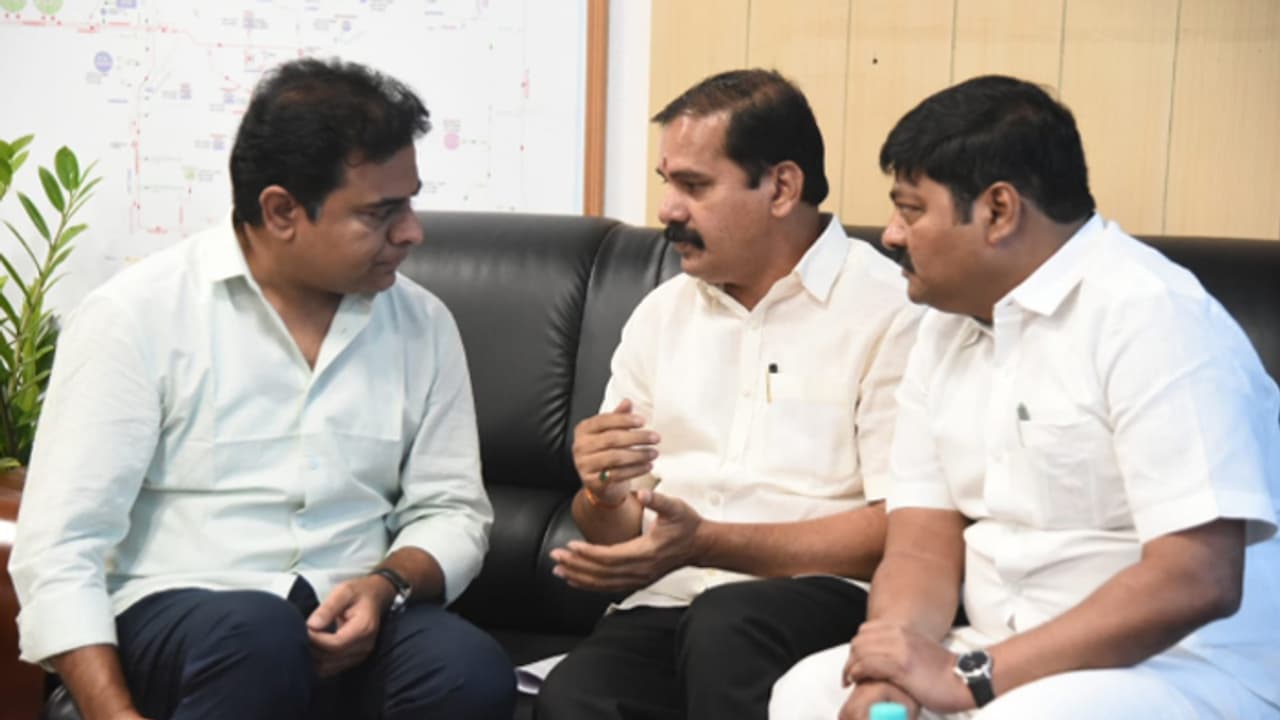 హైదరాబాద్ లోని ఎచ్ఎండిఎకార్యాలయంలో ఐటీ, పురపాలక శాఖామంత్రి కేటీఆర్ ను కలిశారు వరంగల్ మేయర్ నన్నపనేని నరేందర్, ఎమ్మెల్యే దాస్యం వినయ్ భాస్కర్. వరంగల్ నగరంలో ఆర్ పి లు (రిసోర్స్ పర్సన్లు గా) సేవలందిస్తున్న వారి సమస్యలను మంత్రి కేటిఆర్ దృష్టికి తీసుకొచ్చారు. ఇటివల నగరంలో ని ఆర్పీ లందరితో వారి సమస్యలపై గౌరవ వరంగల్ పశ్చిమ ఎమ్మెల్యే దాస్యం వినయ్ భాస్కర్ సమావేశం ఏర్పాటు చేసారు. వారు వారి సమస్యలను, డిమాండ్లను ఎమ్మెల్యే గారి దృష్టికి తీసుకొచ్చారు. ప్రధానంగా వారు తమ జీతాలను 10వేలు చేయాలని కోరారు. గుర్తింపు కార్డులు, ఈఎస్ఐ, పిఎఫ్ సౌకర్యం కల్పించాలని కోరారు. సోమవారం హైదరాబాద్ లో మంత్రి కేటీఆర్ ను కలిసి ఆర్పీల సమస్యలను ఆయనకు వివరించారు.ఈ విషయాలపై మంత్రి కేటీఆర్ సానుకూలంగా స్పందించారు.