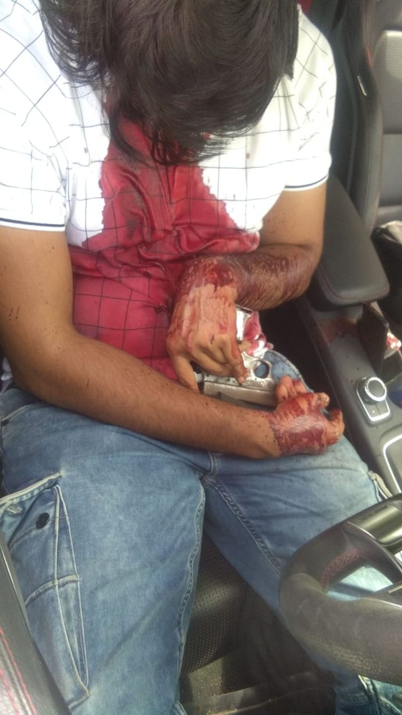 కారును ఎందుకు నిలిపివేశారో తెలుసుకొనేందుకు ట్రాఫిక్ పెట్రోలింగ్ పోలీసులు ఈ కారు వద్దకు వచ్చేసరికి ఫైజాన్ అహ్మద్ రక్తం మడుగులో ఉన్నాడు. వెంటనే కారు అద్దాలు ధ్వసం చేసి అతడిని బయటకు తీసి ఆసుపత్రికి తరలించారు. కేర్ ఆసుపత్రిలో అతనికి చికిత్స అందిస్తున్నారు.